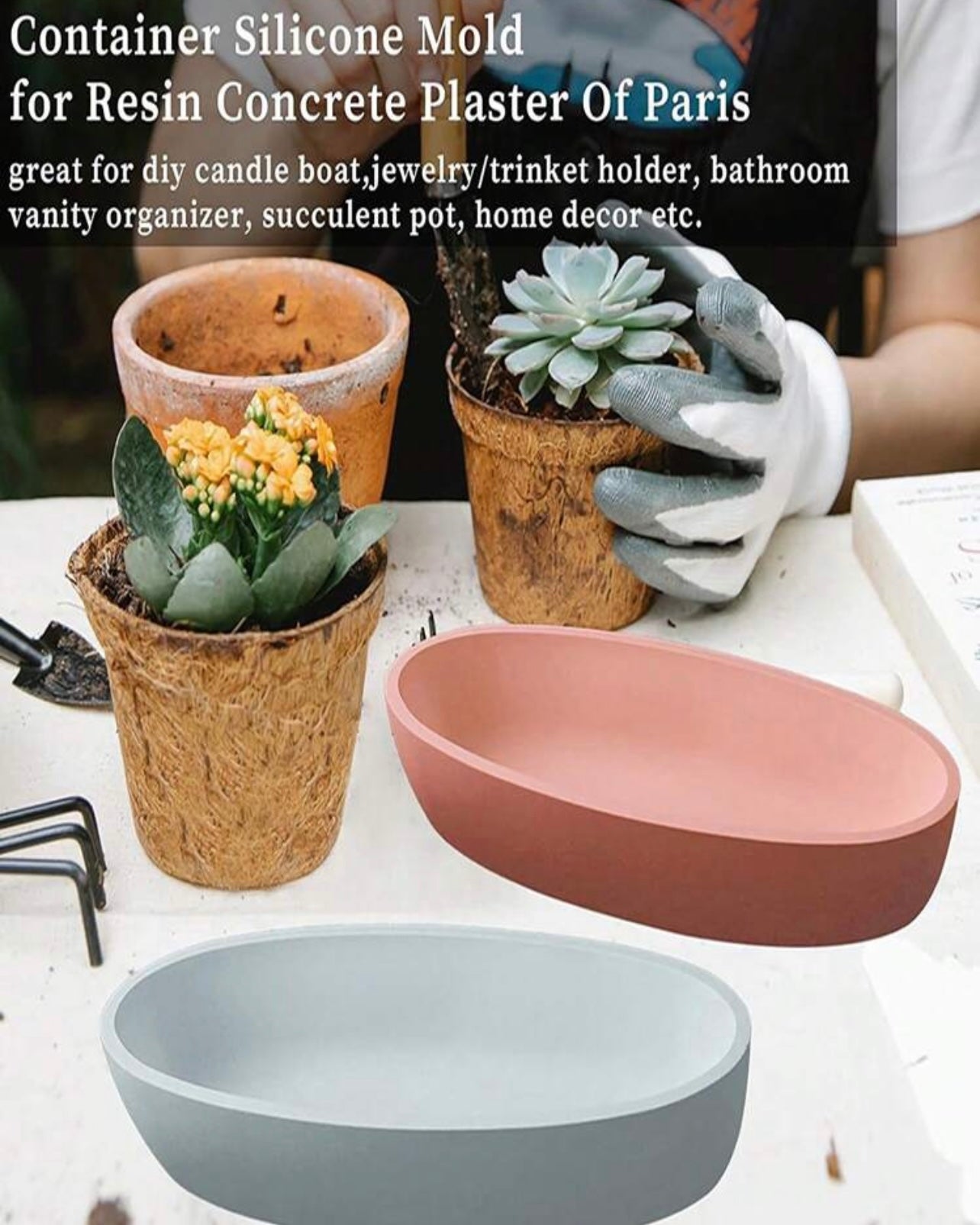 Silicone Mold For DIY Concrete Candle Boat, Oval Cement Planter Pot, Trinket Tray & Candle Cup, Epoxy Resin Molding